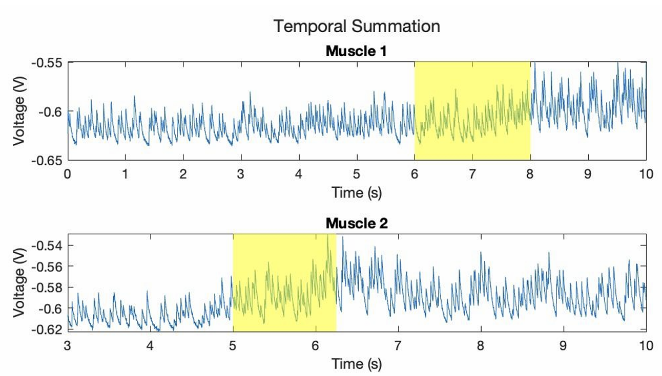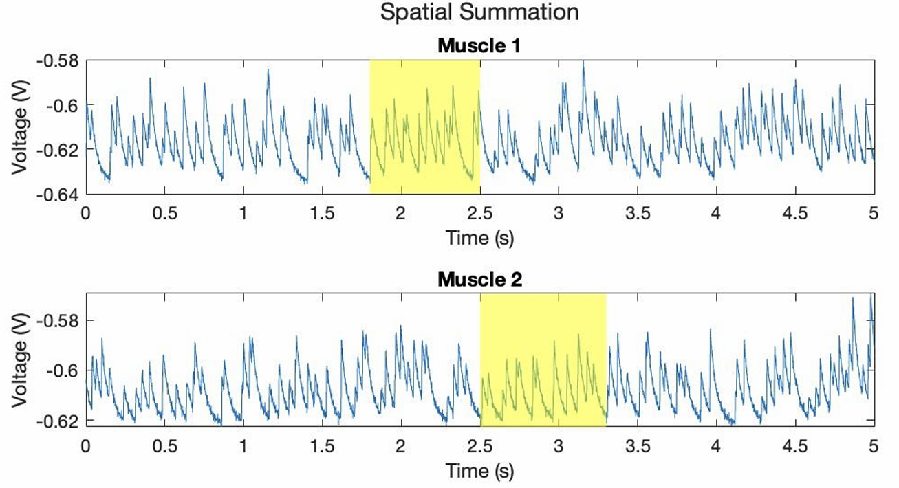 Spatial & temporal summation in muscles one and two.